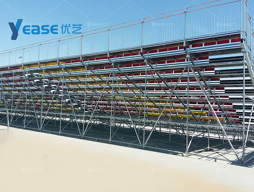 堅固耐用的鋼結(jié)構(gòu)看臺系統(tǒng),滿足戶外場館長期使用與高承載要求。